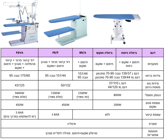 לשולחן גיהוץ מקצועי השפעה רבה על איכות ונוחות הגיהוץ. ישנן 4 רמות של שולחן גיהוץ:
