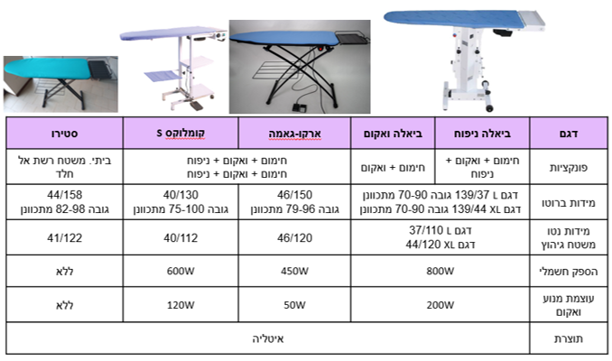 לשולחנות האקטיביים פונקציונליות רבה, שמקלה על הגיהוץ. לשולחנות אלה 3 יתרונות עיקריים:
