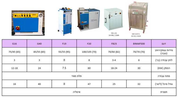 הספק קיטור גבוה, בלחץ גבוה, המתאים לפעולות ניקוי שונות