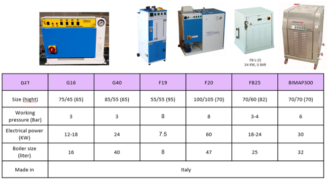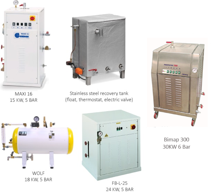 Range of steam boilers: 8 liters, 27 liters, 57 liters up to several hundred liters